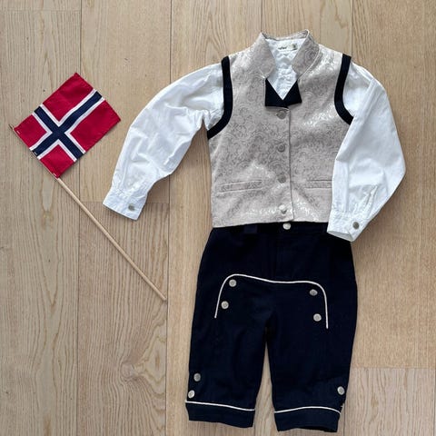 Haakon festdrakt i str. 2 år selges. Jakke følger ikke med. Meget pent brukt. Hjemmestrikket