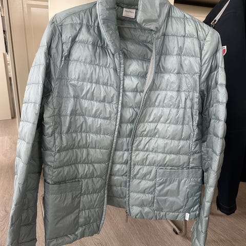 Dus, dueblå farge som er vanskelig å fotografere. Se på bildet hvor den ligger på en klarblå jeans, så får du en pekepinn. Gråblå- ish. Du ser også en bitteliten flekk på dette bildet: Har ikke prøvd å vaske eller fjerne den, så jeg vet ikke om den går bort. Den var der da jeg selv kjøpte den pent brukt (har ikke brukt den selv). Selges så billig pga dette. Ser det ut som flere flekker er den fordi den akkurat ble litt steamet før fotoseansen, -men nå ble jeg litt usikker på om det er noen bittesmå skygger etter noe annet 🤔 Tar du sjansen? Selges som den er.