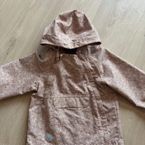 Hust & Claire jakke i størrelse 104 for jente. Jakken er rosa med et blomsterprint og laget av polyester. Den har hette og elastiske mansjetter ved ermene. 5000mm waterproof and breathable.