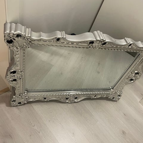 Vegghengt speil i to separate deler, kan henges opp sammen eller hver for seg. Oppheng følger med.