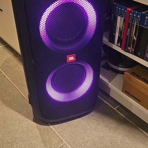 JBL høyttaler partybox 300 med LED lys. Spiller veldig høy og god lyd med mye dubde med bruk av sub. Passer bra til utendørs bruk, fest eller konsert i dusjen🙂 ønsker å bytte til en mindre høytaler. Eventuelt bare selge. Pris diskuteres.