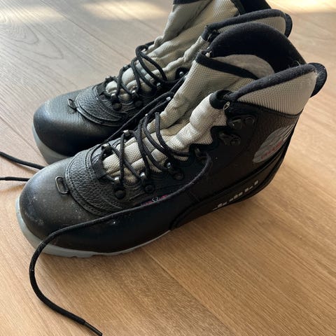 Alpina langrennsko i svart farge. Skoene har glidelås foran og er designet for bruk i langrenn.