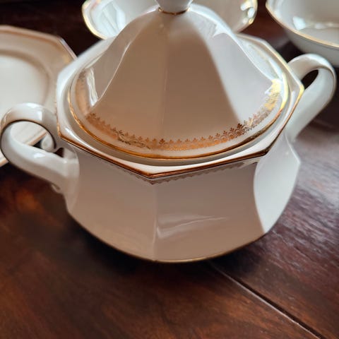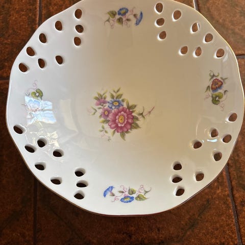 Skål med lokk vakkert dekorert. Stemplet med RW Bavaria. Skål med lokk er ca 16 cm høy, diameter 16 cm. Ingen merker elker slitasje, svært pent brukt.