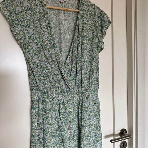Søt lang romslig ICHI sommerkjole med grønne blomster str S