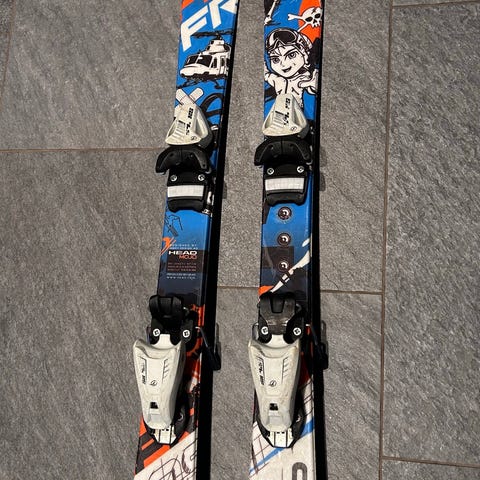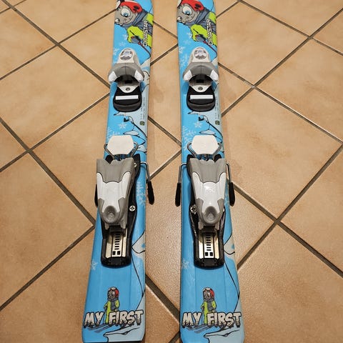Dynastar alpinski i blå og røde farger 110cm. Sålen er i god stand og er satt inn med voks. Klare til bruk.