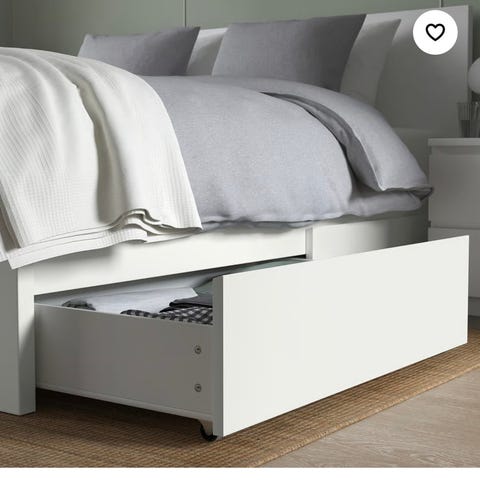 Japansk sengeramme som ligger lavt på gulvet.