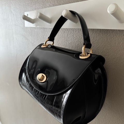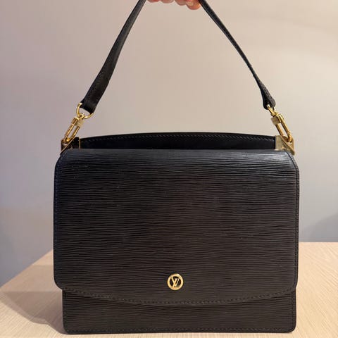 Givenchy dameveske laget i svart lær. Vesken har to håndtak og flere rom med glidelås og knappelukking, egnet for oppbevaring av personlige eiendeler.