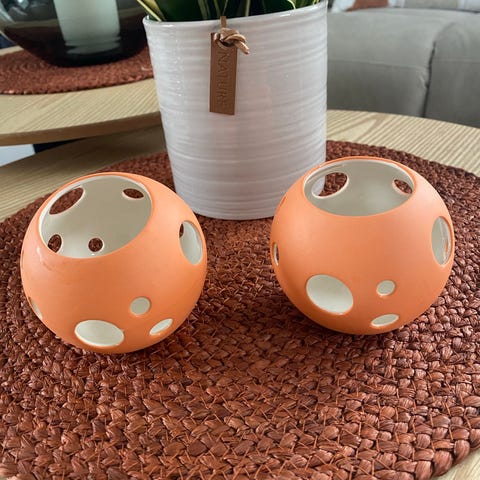 T lysholder håndlaget i keramikk.
