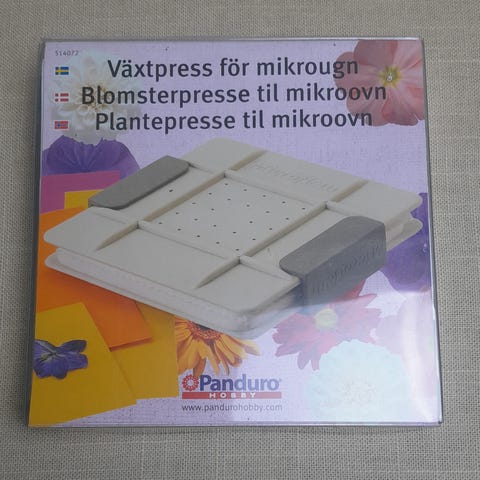 Kvadratisk blomsterpresse i tre med papp og filt i flere lag. Skrumekanisme. 15×15 cm.