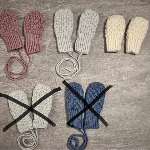 Håndstrikkede babysett votter/sokker 3/6 mnd