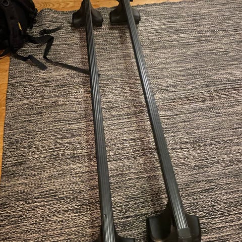 Volvo 101863 takstativ i aluminium med svart plast, beregnet for montering på bilens tak. Stativet har en bæreevne på opptil 100 kg og passer til venstre side foran og bak.