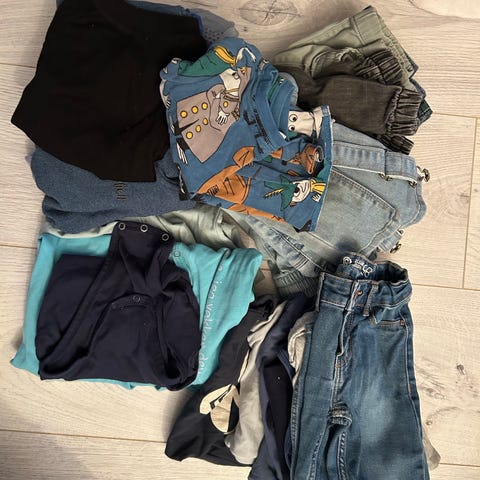 Klespakke i str 92 (inneholder klær fra 92 til 104) selges. Klærne er pent brukte, men kan ha bruksmerker, nupper eller flekker som ikke går bort i vask.