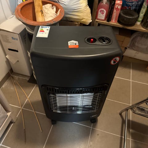 Gassovn. Mener det er 1,5 - 3,0 - 4,5 kw effekt. Veldig effektiv ved behov for rask varme