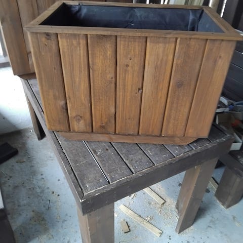 NY HJEMMELAGET BLOMSTERKASSE LAGET AV IMPREGNERT MATERIALE FERDIG BEISET MED DUK