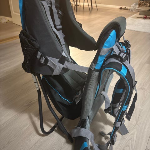 LittleLife bæresele for barn i fargene grønn og grå. Bæreselen har justerbare stropper og polstrede skulder- og hoftebelter for komfort. Designet for å bære barn på en trygg og ergonomisk måte.