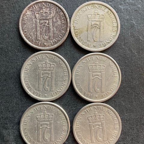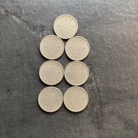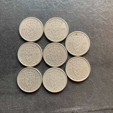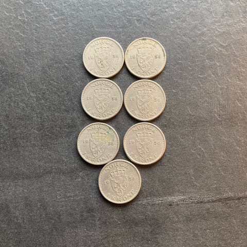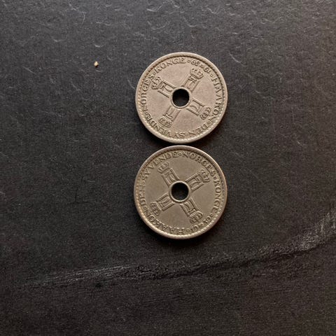 Norske mynter 1 krone med hull 4 stk
