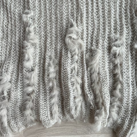 Uten lapp så vet ikke hva slags garn det er, men føles ut som en del ull.