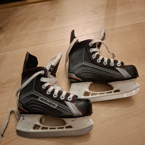 Barn skøyter for ishockey i one size. Justerbar størrelse mellom 34 og 37. Skøytene har svart og hvit farge med spenne for sikker passform.