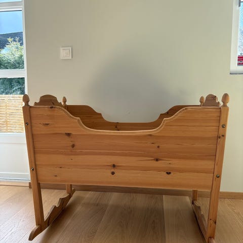 Vugge håndlaget på Nordmøre av Lars Sæterøy. Mål