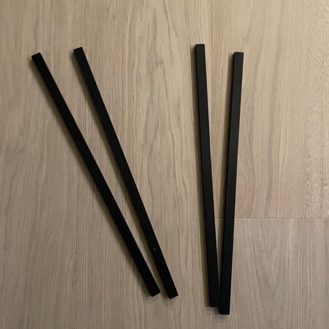 Hver list består av to deler som festes til hverandre med magneter. Den ene av disse har to hull som skal skrus til veggen (skruer medfølger ikke). Vi har brukt lim, så derfor er denne delen ikke så pen, men den vil ikke synes da den skal vendes inn mot veggen.