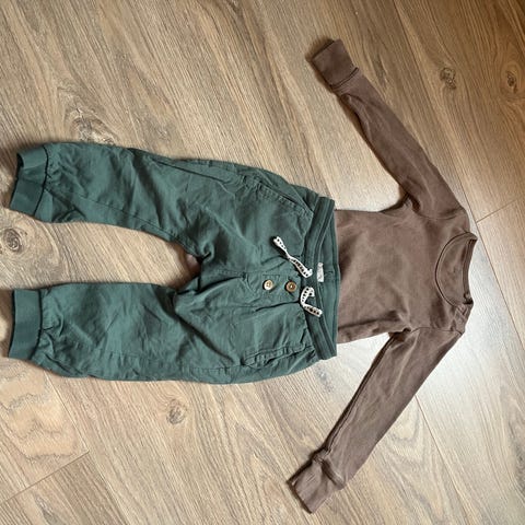 Name it bukse i størrelse 86 og body fra Lindex i størrelse 80 (oppfattes stor i størrelsen og har blitt brukt samtidig).
