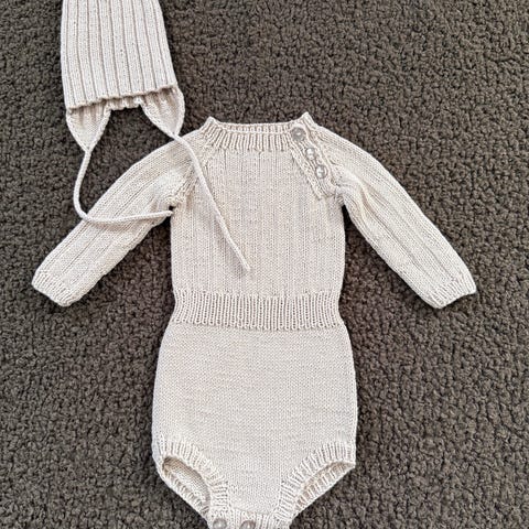 Ny hjemmestrikket offwhite Ankersdrakt ullbody i str. 1-3 mnd