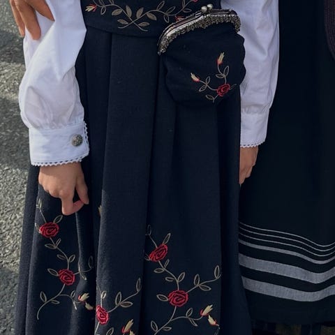 Festdrakt i str. 152. Hvit skjorte i 158/164 og veske følger med.
