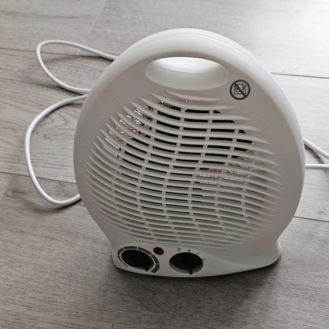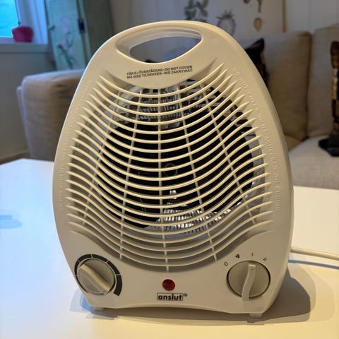 Beha Vifteovn i grå farge. Kompakt design med justerbare temperaturinnstillinger og viftefunksjon. Elektrisk varmeovn med enkel betjening, egnet for oppvarming av små rom. Og den kan brukes som air condition på sommeren