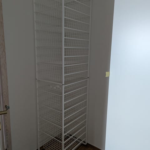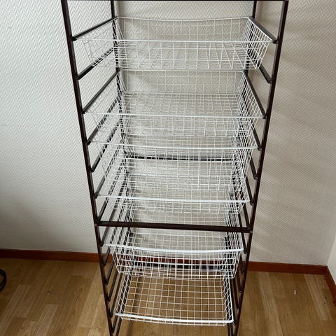 Trådkurvstativ med skuffer. Pent brukt. Kan kobles på annet stativ og bygges i høyde.