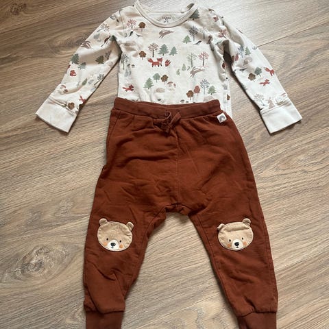 Lindex barneklær sett i blå farge, størrelse 86, for unisex barn. Sett består av langermet body, bukse med detaljer og sokker. Egnet for daglig bruk.