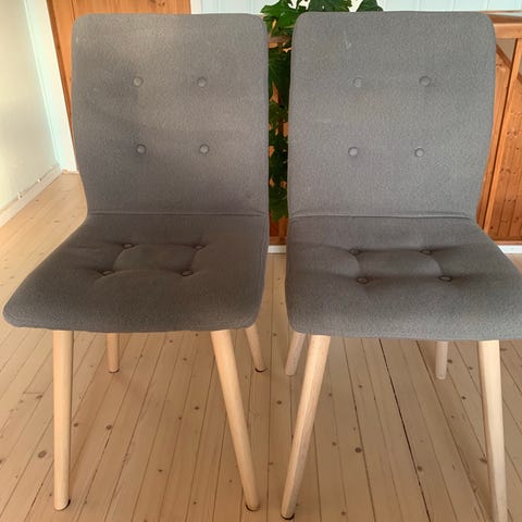 2 stk hvite stoler med tre og metall-bein. DSW-inspirert
