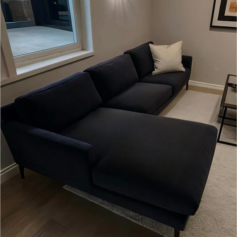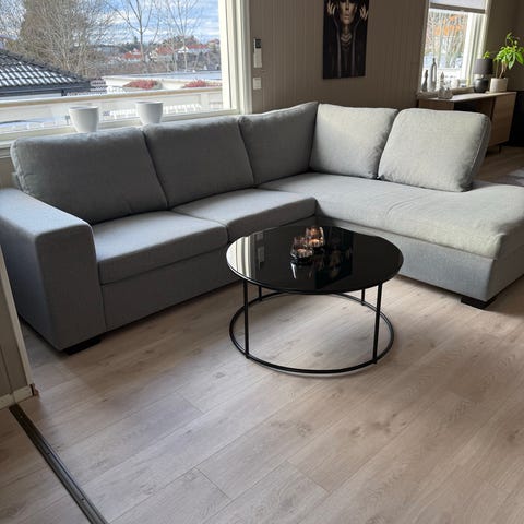 Pent brukt hjørnesofa fra IKEA i fargen Tallmyra.