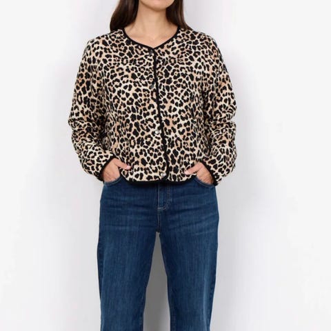 Soyaconcept Andre jakker i størrelse L for kvinner. Jakken har et flerfarget leopardmønster og er laget av polyester.