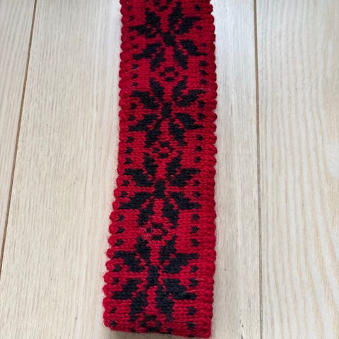 Strikket pannebånd i blått og grønt , med sjatteringer selges.