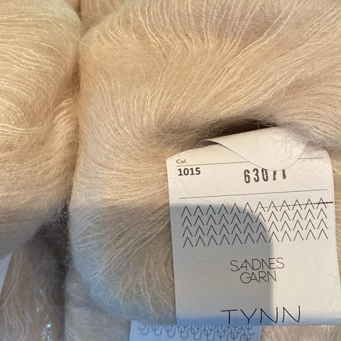 Sandnes Garn Tynn Silk Mohair garn i beige farge. Materialblanding består av 57% mohair, 28% silke og 15% ull. Hver nøste veier 25 gram