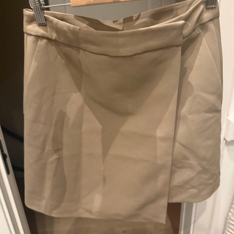 Mos Mosh skjørt i størrelse 36 for dame, laget av polyester. Skjørtet har en beige farge og er designet for kvinnebruk.
