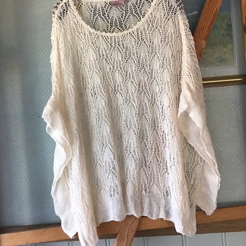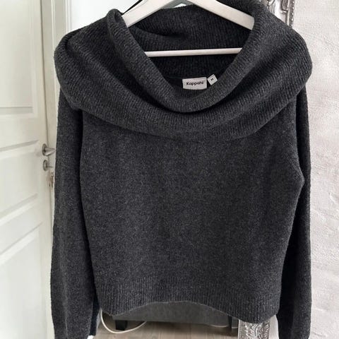 Kjempefin ettersittende genser. Kan brukes off the skjolder, eller som stor krage.