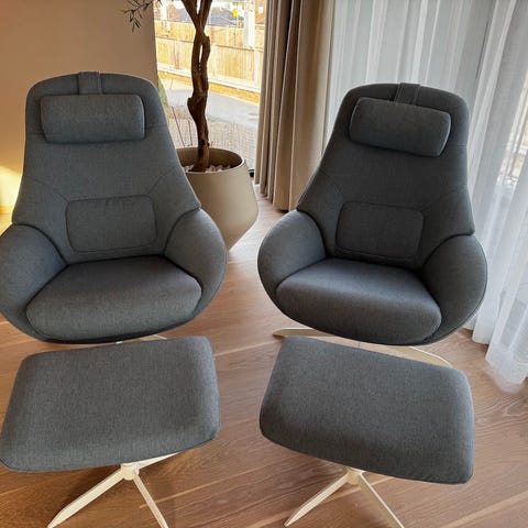 2stk Bolia lenestoler med puff selges samlet 8000kr
