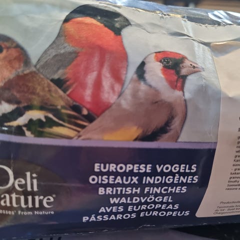 Gis bort da det blir en del søl under fuglemateren. Ca. 2 kg igjen i posen.