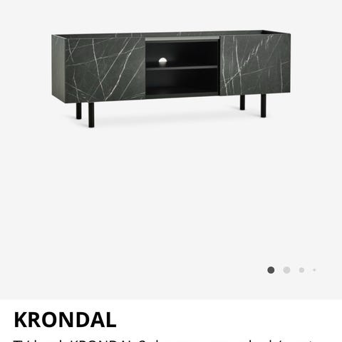 KRÖNDAL TV-benk av massiv bøk og folie med svart marmorlook. Møbelet har to skapdører og åpen hylle for oppbevaring. Designet med ben i svart farge. Passer til oppbevaring av elektronikk og annet i stue.Ny 2490;