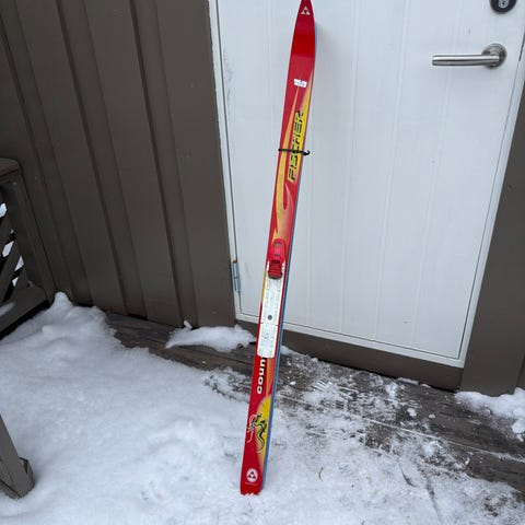 Fischer langrennsski i rød og svart farge.