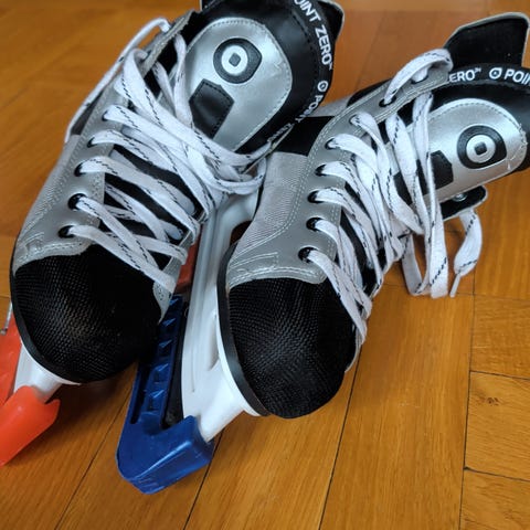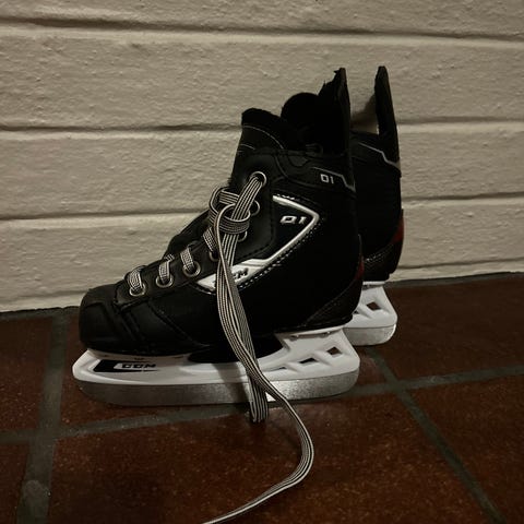 Barneskøyter i størrelse 30 med justerbar lukking og hvit og svart farge. Egnet for barn og designet for generell bruk på is.