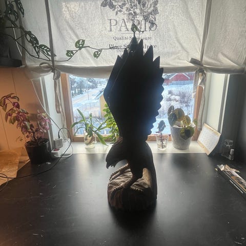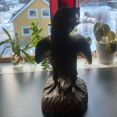 Trefigur av ørn utskjært for hånd , meget pent utført og sjelden