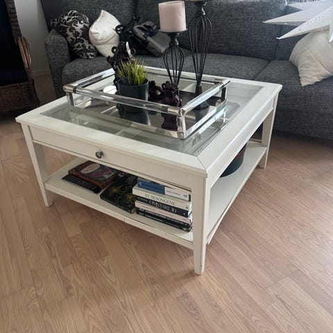 Sofa bord med skuff og glassplate