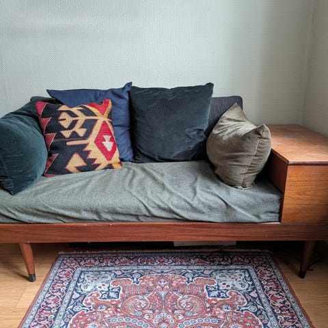 Sjelden sofa i ull og furu fra 70/80-tallet. 3-seters. God kvalitet og fint design. Jeg har arvet den fra min bror, som tidligere har kjøpt brukt på finn.