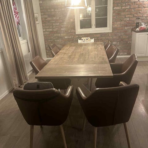 Selger denne flotte spisegruppen, spisebordet er veldig pent brukt- stolene har noen slitasjer