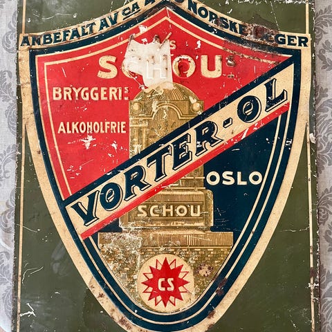 Schous skilt 30-40 tallet selges kr 1300. Høyde 25cm bredde 21cm