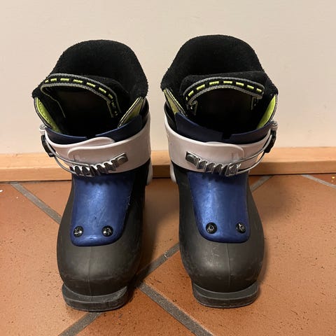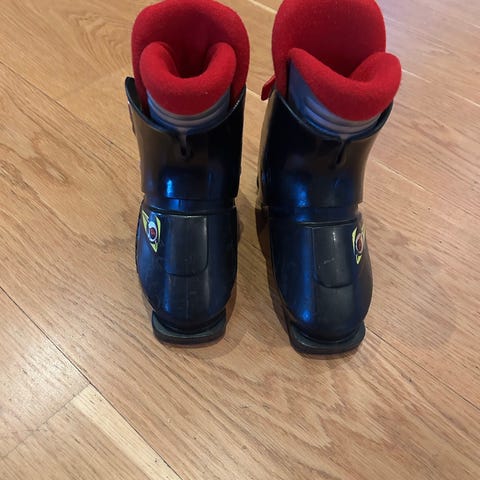 Nordica skistøvler for barn med størrelse 16,5 cm. Støvlene er i svart og rød farge, med spenner for justering og god passform.