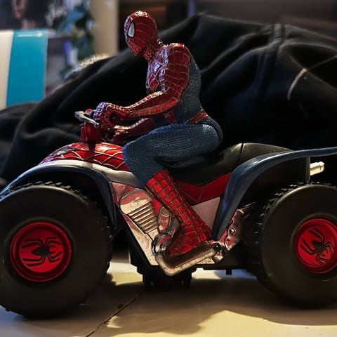 Pent brukt Spiderman / Miles Morales figur med kjøretøy.
