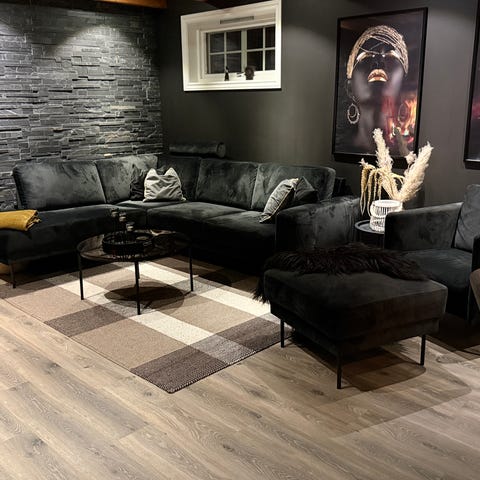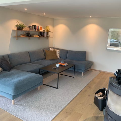 Furninova hjørnesofa med puff fra Skeidar selges grunnet flytting. Dette er en modulsofa i stoff Coffee day. Nypris 35.000 i mai 2023. Har kvittering. Veldig god å sitte i. Nakkedtøtten kan plasseres etter ønske. Puffen har samme høyde som sofasetet som gjør at den kan brukes til forlengelse av sofaen, fothviler eller også bord om man bruker en plate av noe slag på puffen. Den er ikke 90 grader i hjørnet, så det er plass til en stålampe eller lignende. Høyre armlene er med stor oppbevaring. Armelenene kan ikke snus, men man kan kjøpe til flere moduler til denne sofaen hos Skeidar i samme stoff også. Mål hjørne mot venstre: 237 cm.